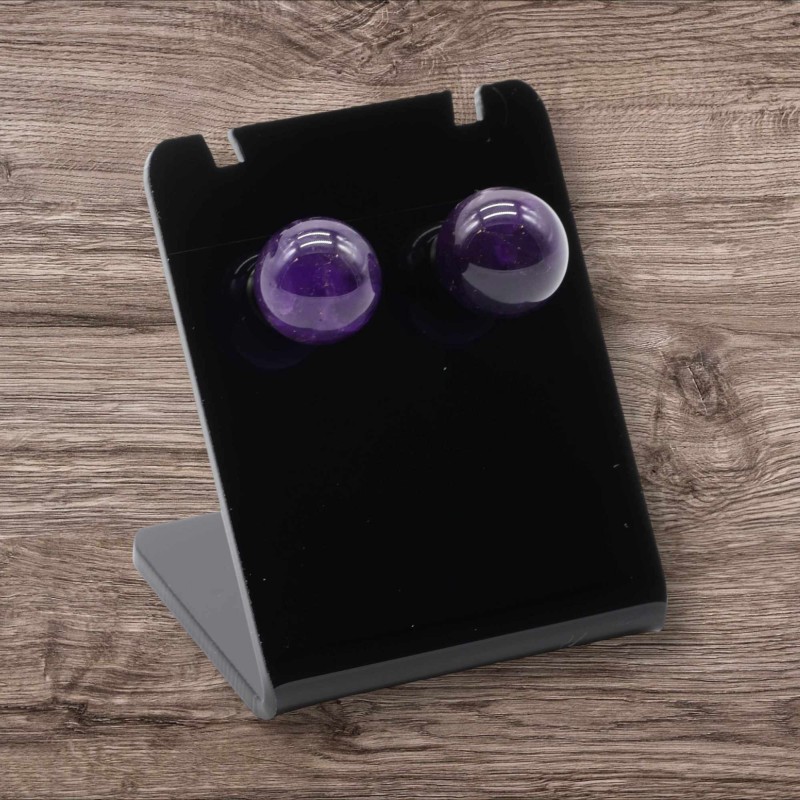Boucles d'oreilles à Clous avec des perles rondes en Améthyste magnétisées