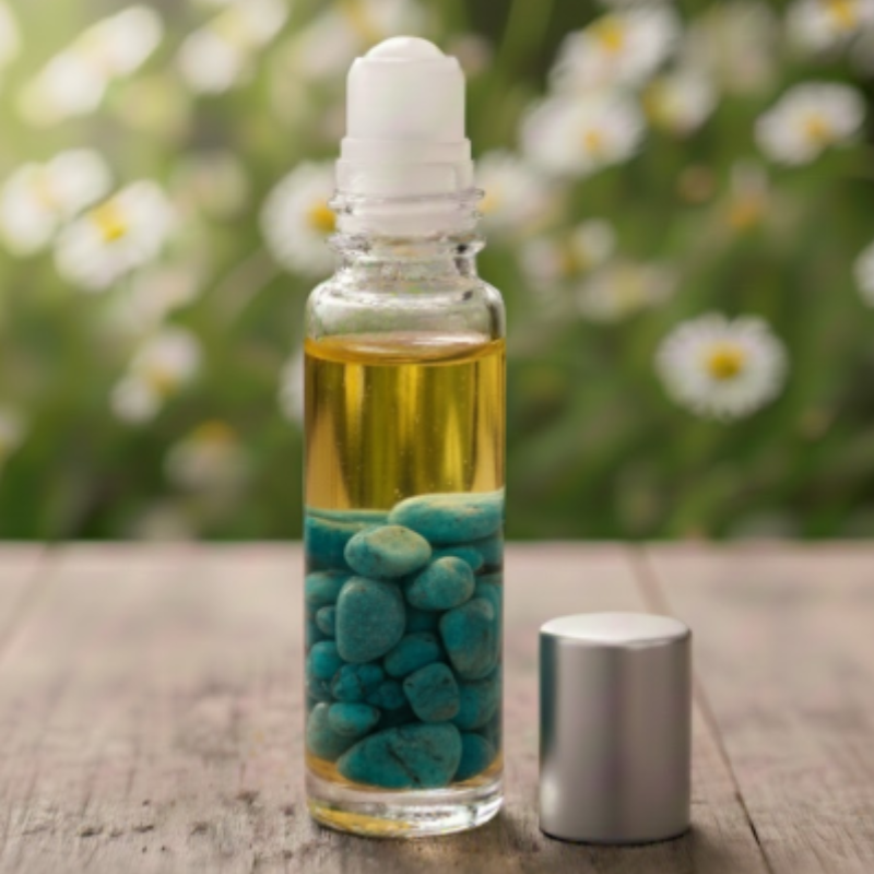 Appliquez délicatement le roll-on sur la zone de la gorge, le cou ou l'intérieur des poignets. Prenez un instant pour visualiser une lumière bleue libératrice. Affirmation : "Je m'exprime avec clarté, ma parole est juste et ma vérité est entendue."